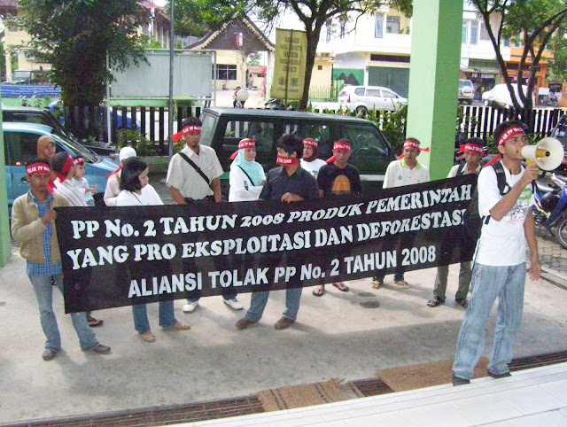 Peraturan Pemerintah No 2 tahun 2008 tentang Jenis dan Tarif atas Jenis Penerimaan Negara Bukan Pajak yang Berasal dari Kawasan Hutan untuk Kepentingan Pembangunan di Luar Kegiatan Kehutanan (selanjutnya akan disebut PP No 2/2008), merupakan perwujudan dari ke-tak-bijakan pemerintah yang menegasikan etika dan prinsip pembangunan berkelanjutan yang menempatkan lingkungan sebagai salah satu sektor utama yang harus dirawat dan dilestarikan. PP No 2/2008 dengan sangat telanjang menunjukkan kemana pemerintah yang berkuasa saat ini berpihak ; yaitu hanya kepada pihak pemodal dan pengusaha besar, juga pemerintah ini telah menyimpuhkan mandat rakyat yang dipercayakan kepada mereka kehadapan rejim kapitalisme global dengan kompensasi-kompensasi materi yang pada ujungnya menambah kesengsaraan rakyat dan destruksi lingkungan.