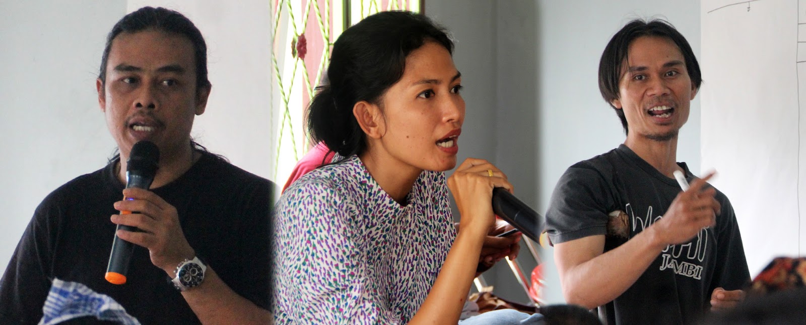 | (dari kiri ) Musri Nauli – Zubaidah – Dwi Nanto pemateri Pelatihan |