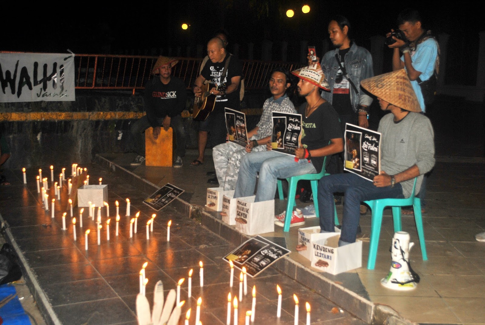 Jambi, Jum’at, 24/03/2017, sejumlah individu dari kalangan mahasiswa, Lembaga Swadaya Masyarakat (LSM), Organisasi Massa (Ormas) Mahasiswa, Ormas Tani, Kelompok Pecinta Alam, dan Organisasi Perempuan di Jambi menggelar aksi lilin dan do’a bersama di depan Kantor Gubernur Provinsi Jambi, menyampaikan bela sungkawa atas meninggalnya Ibu Patmi (48), perempuan tani yang meninggal dunia dalam aksi menolak keberadaan pabrik semen di kawasan Pegunungan Kendeng, Kabupaten Rembang, Jawa Tengah.