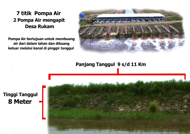 Hal tersebut ditandai oleh salah satunya dengan pembangunan tanggul sepanjang 9-11 KM dan Tinggi 8 Meter yang berada di titik koordinat X 0363994 Y 9843401 oleh PT. EWF.