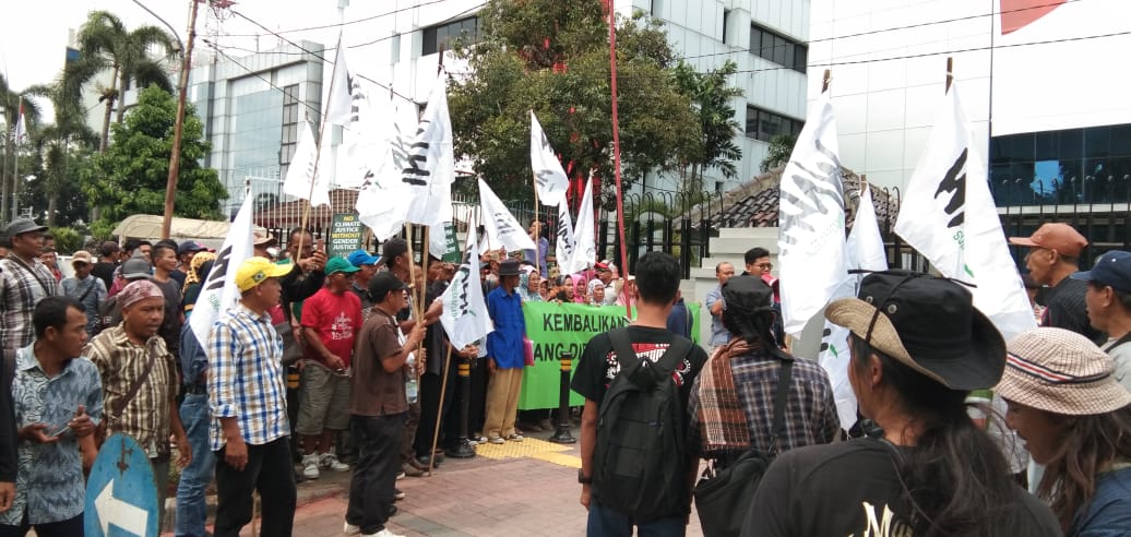 Jakarta, Jumat, 22 Maret 2019— Dua ratusan massa tani dari Jambi dan Sumatera Selatan datang ke Jakarta untuk menyatakan protes kepada Menteri Agraria dan tata Ruang/ Kepala BPN, Sofyan Djalil. Di damping WALHI, masyarakat meminta Menteri fokus pada persoalan kerakyatan, khususnya reforma agraria, dibanding sibuk menutupi informasi Hak Guna Usaha (HGU) Perkebunan kelapa Sawit. Ditutup-tutupinya informasi ini menguatkan kecurigaan adanya kesengajaan menutupi praktik kotor perkebunan kelapa sawit, seperti konflik, penggunaan areal yang tidak seharusnya, pencemaran dan lainnya. Terlebih sebagian massa aksi merupakan masyarakt korban praktik buruk investasi kelapa sawit.